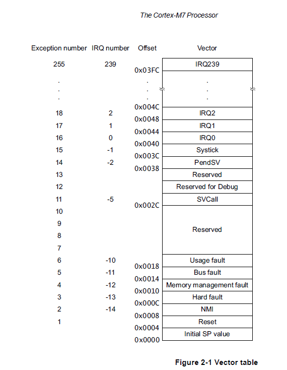 1. 中断向量表第 0 - 1 个向量比较特殊,是程序初始 SP 和 PC 值