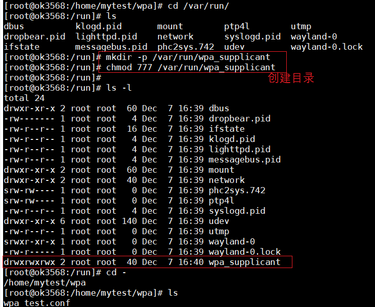 上面提到,/var/run/wpa_supplicant 是 wpa_supplicant与客户端工具(如 wpa_cli)之间的进程间通信(IPC)接口目录,所以需要确保该目录的存在,可以手动创建该目录,并赋予权限: