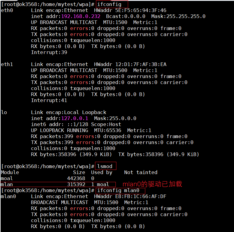 在运行之前,可以先看下mlan0的情况:
