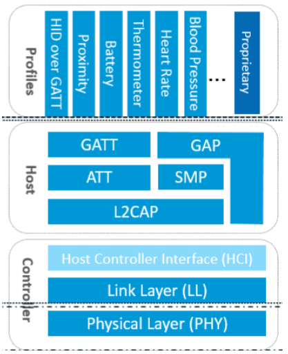 在刚接触 BLE 蓝牙协议栈查看资料的时候,大家估计都能接触到类似下面的协议栈框架图: