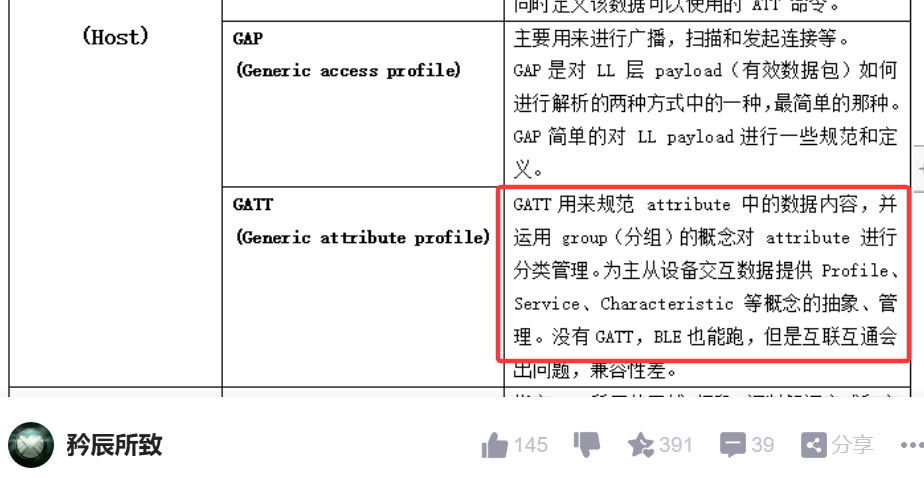 - • GATT 客户端 – 该设备从GATT服务器读写数据。(通常应用来说就是Central(主机))