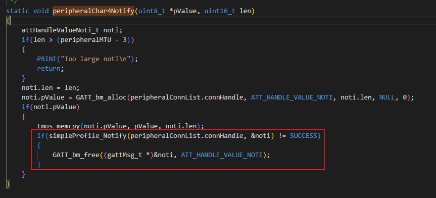 示例中还给我们提供了一个发送 Notify 的函数simpleProfile_Notify 。