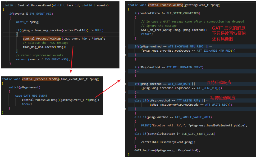 消息传递这部分在我以前的博文 CH58x/CH59x 系列芯片从机示例解析 中也有过部分说明: