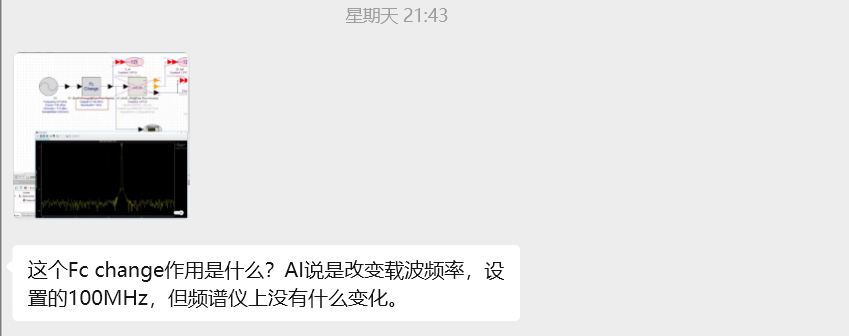 我先打开了Systemvue,确认了一下,情况确实如同学所说,频谱仪看不到频率的变化。