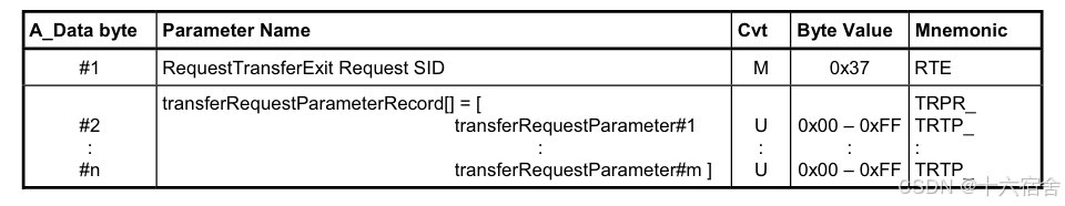 37服务是退出此次传输,下图为ISO 14229-1对37服务协议格式的定义。
