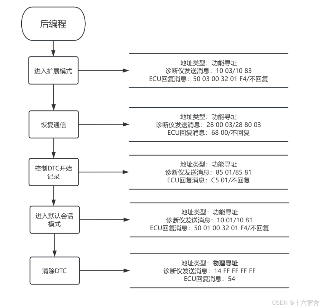 后编程阶段(Post-Programming Phase):复位ECU,退出BootLoader模式,并恢复总线上ECU功能。