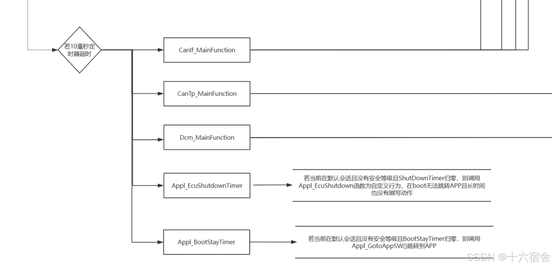 然后,就是正常情况下的10ms定时器超时,完成对应模块的MainFunction调用以及是否跳转APP的判断。