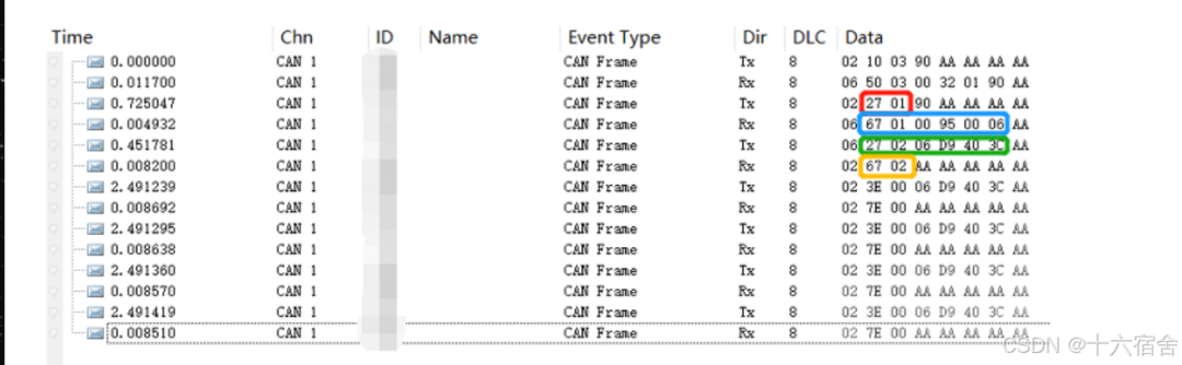 下图为一次完整传输过程中的36服务,其为36服务的不断发送,接收对应响应的过程,可以看到36服务多帧发完之后,ECU一般会回复一个0X78的NRC做一下挂起响应,提高ECU回复正响应时间(通常为500ms),因为此时ECU需要操作FLASH进行写入,然后再回复76 01这个正响应(注意Block的ID先从1到FF,然后FF过后再从0开始)。