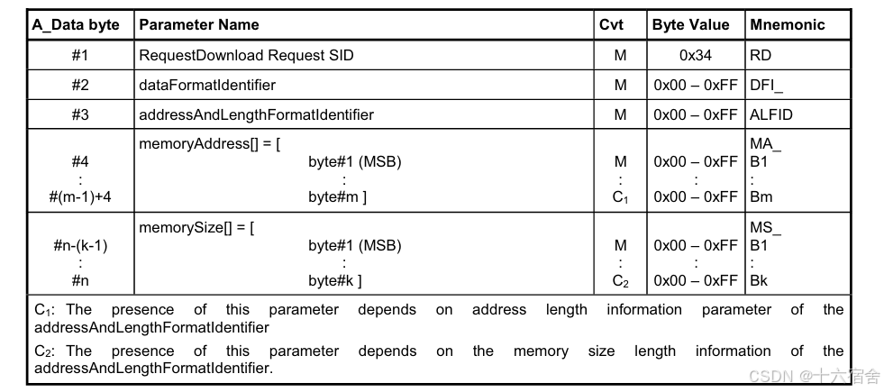 下图为ISO 14229-1对34服务协议格式的定义。