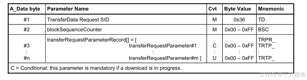 下图为ISO 14229-1对36服务协议格式的定义。