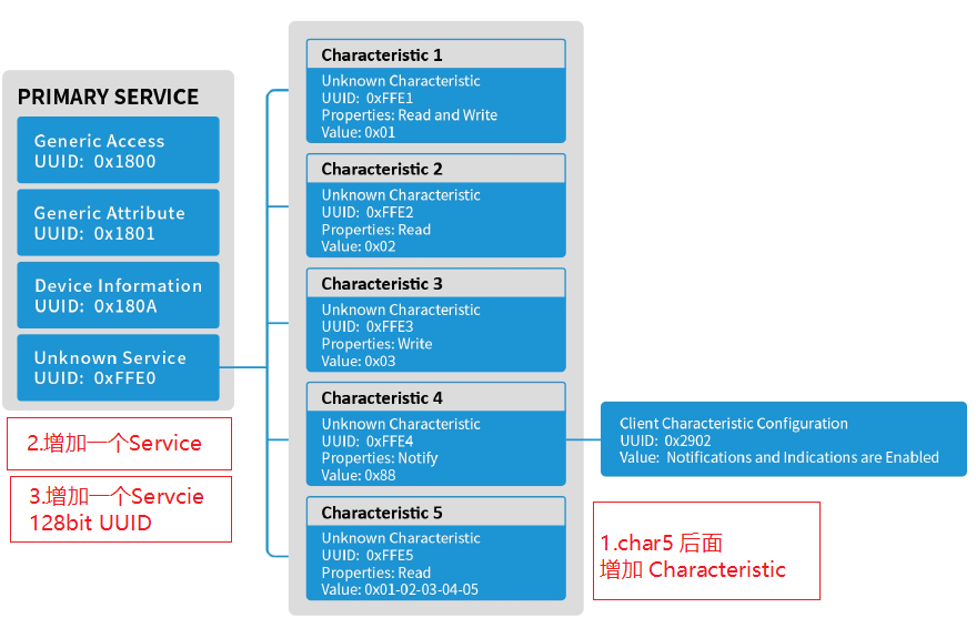 我们只要搞清楚了,官方示例提供的自定义服务特征值,那么自己应用中的服务特征也不会有什么问题。
