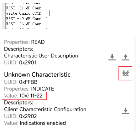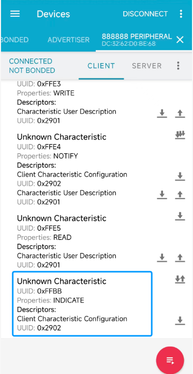 至此我们新的具备 Indicate 属性的特征值就添加完成了,我们可以看一下测试效果: