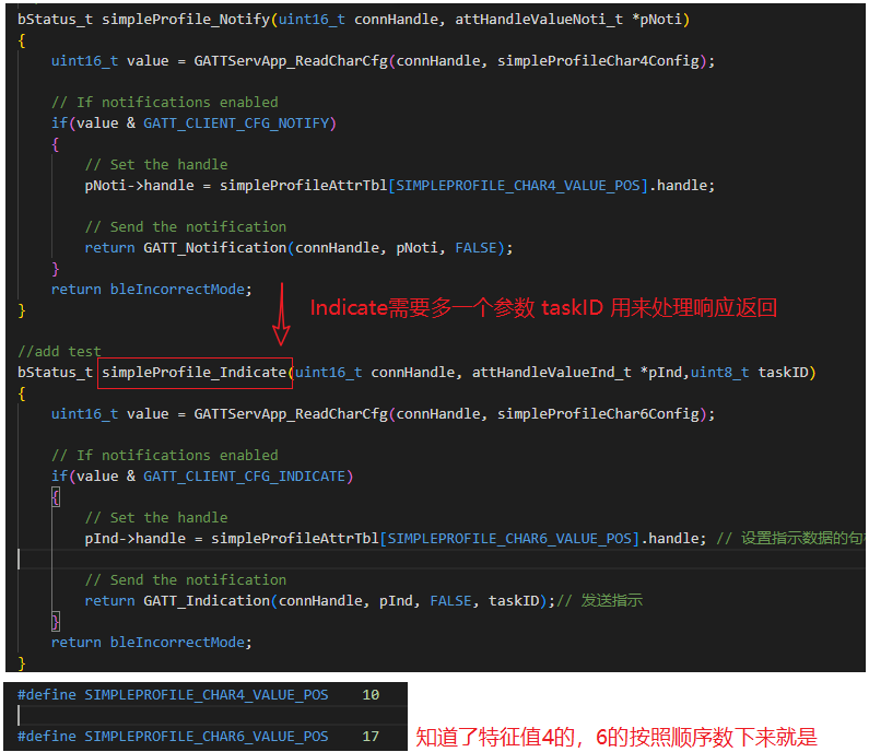 2. 2. 实现一个 simpleProfile_Indicate函数,可以参考例程原始的函数: