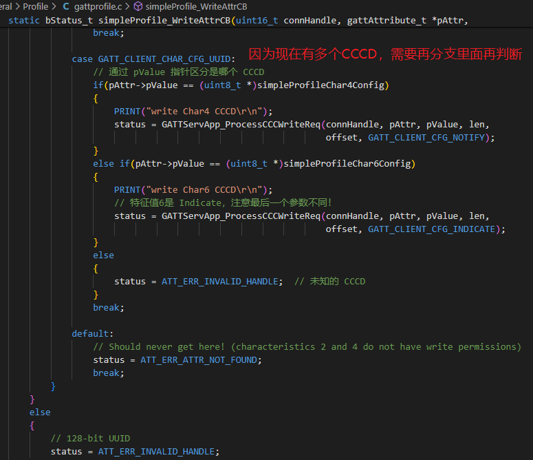 3. 3. 函数simpleProfile_WriteAttrCB 中增加特征值 6 的 CCCD 读写处理: