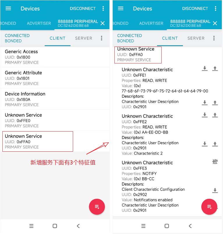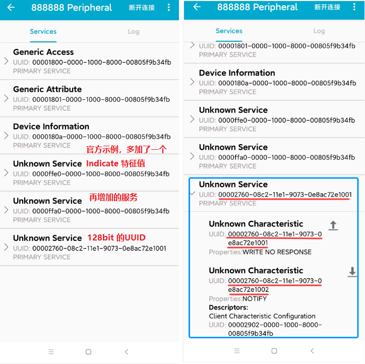 最后来测试一下 128bit UUID 服务和特征值的增加。