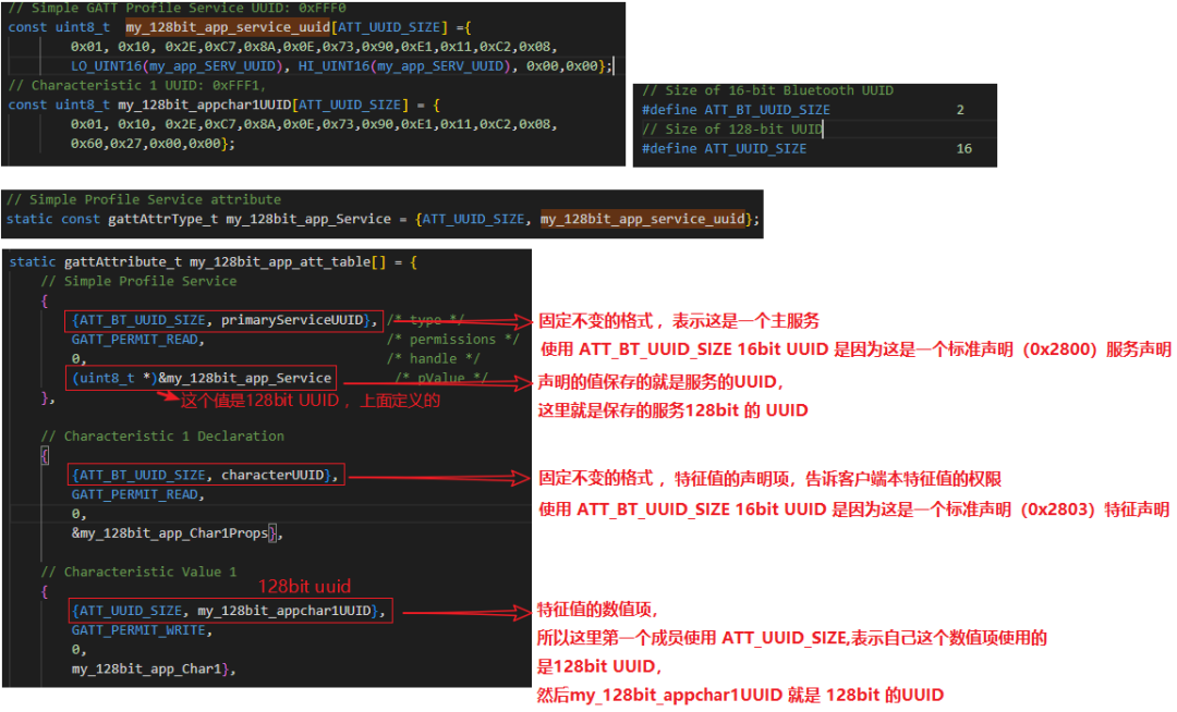 可以肯定的是,即便是 128bit UUID 整体的逻辑依旧是和 16 bit 的 UUID 一样的,就等于代码框架不变,我们把需要注意的地方说明一下。