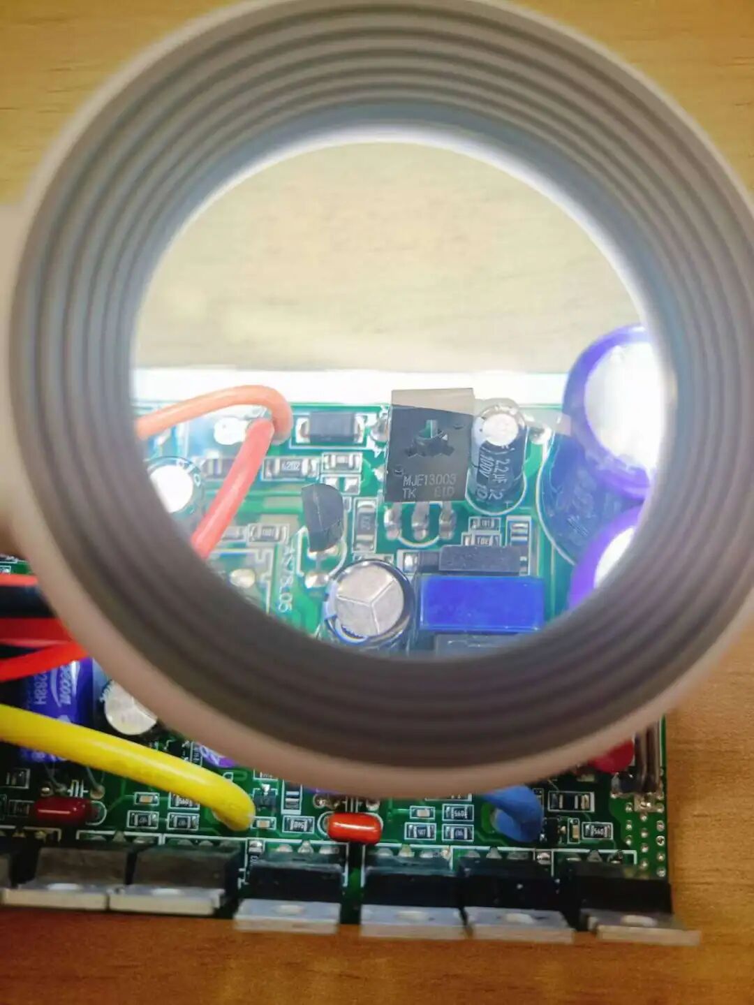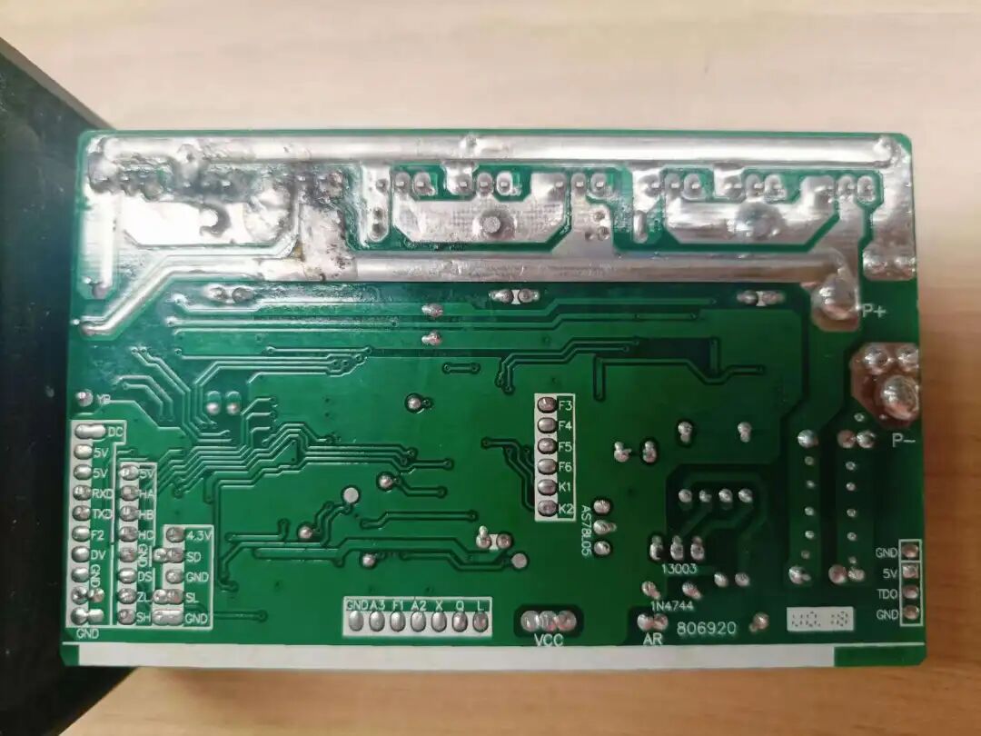 看一下近照:拆多了发现一些非大厂的电瓶车控制器板子做的都差不多,这个板子上我没找到BLDC驱动芯片,电驱方案也是纯分立器件搭建的,早期驱动芯片贵,分立器件搭成本比较低,不过现在都还好,国产的电机驱动芯片也不贵了。