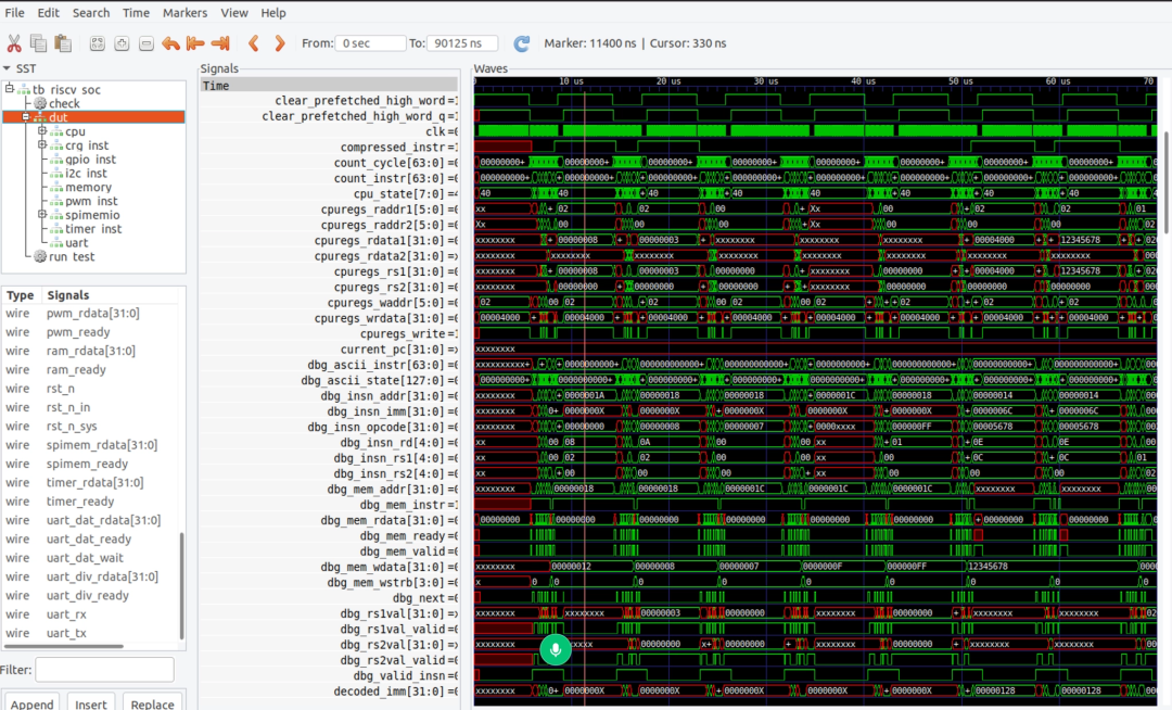 验证自动搭建测试平台,构造case,测试通过,并收集覆盖率,随便打开一个波形看了下,是真的有点东西