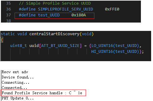 这里是为了测试的硬编码,知道从机哪几个UUID 具备什么特征值