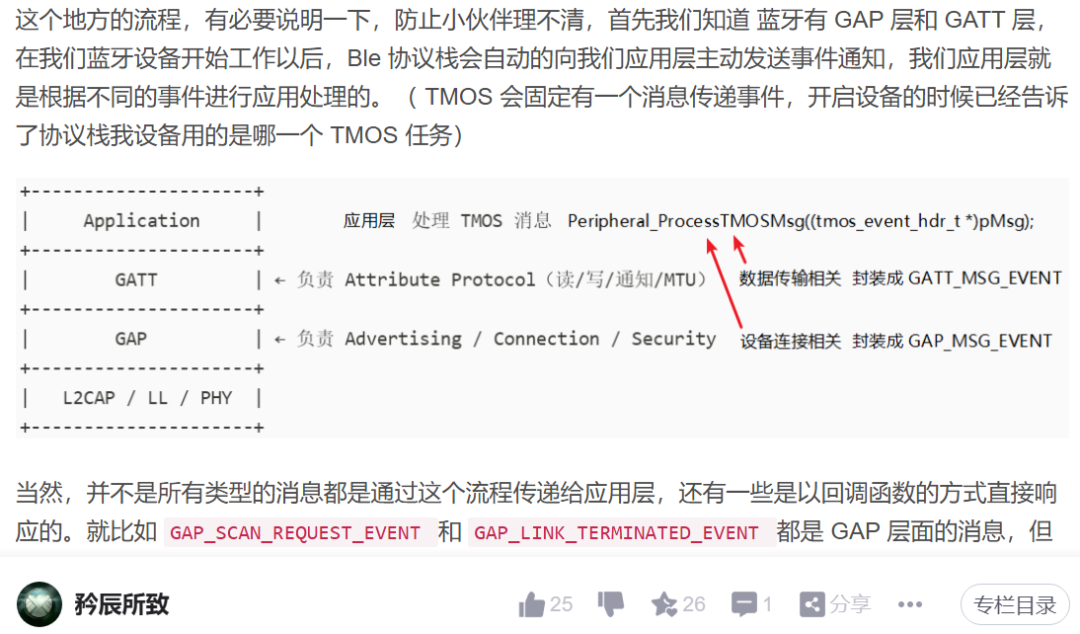 TMOS + 蓝牙协议栈的交互本质是 “异步事件驱动”。TMOS 是协议栈和应用层之间的唯一 “消息中转站” 。