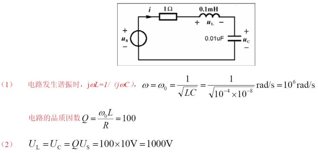 (2)电路谐振时, UL 和UC 的有效值是多少?