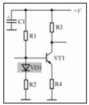 二极管VD1 起温度补偿作用:PN 结的导通压降随温度升高而略有下降,如果没有VD1 温度补偿二极管,放大电路会出现温漂现象,电路输出电压会出现漂移。如果没有VD1,温度升高的时候三极管的Vbe 电压降低,但Vb 不变,基极电流Ib增大;反之则温度降低,Ib 减小。加入VD1 后可抵消三极管Vbe 的变化,稳定Ib 电流。