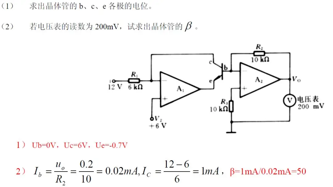 ****90**由理想运算放大器组成的晶体管电流放大系数β 测试电路如图所示,设晶体管的UBE=0.7V。**