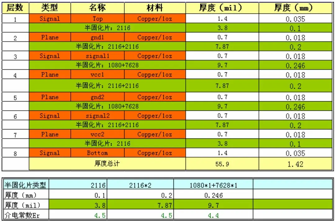 半固化片是PCB 中的介质材料和粘合材料,由玻璃纤维和环氧树脂组成,介电常数大概是4.0~4.5。在常温下半固化片是固态,高温加热时半固化片胶状化将上下两侧铜箔粘合起来,半固化片成为中间的介质。