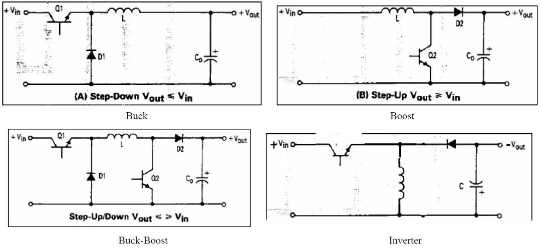 ****93****请画出DC-DC 电路的四种电路简图(Buck、Boost、Buck-Boost 和Inverter)。****