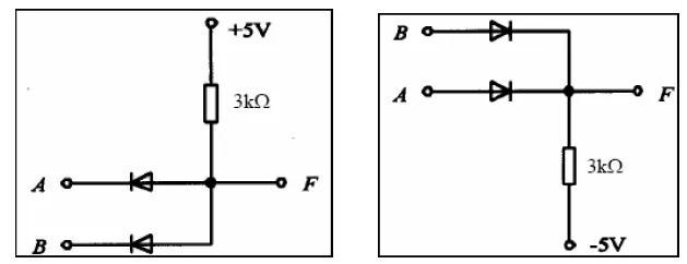 **65****请画出二极管和电阻组成的二输入与门、二输入或门。**