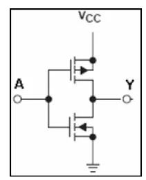 Y=/A,这是CMOS 结构的非门。