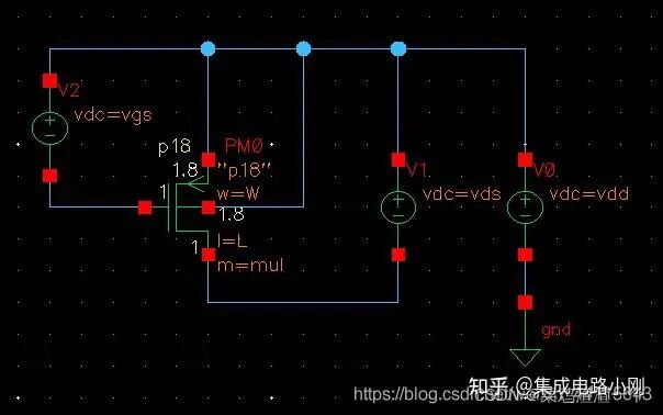 上一篇文章已经得到了在不同的vsg下的vsd参数曲线。原理图如下。W为220um,L为180um,后面会用到。