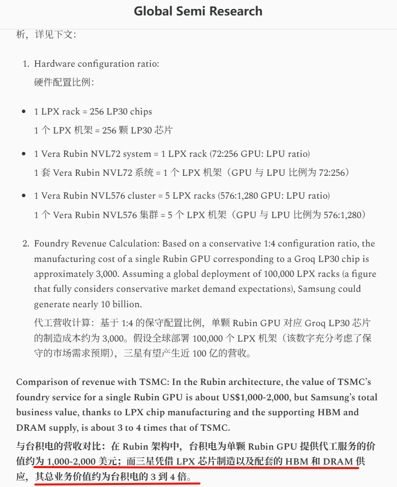 在Rubin上,三星的综合价值量已经超过台积电了,因为台积电只负责代工加封装。