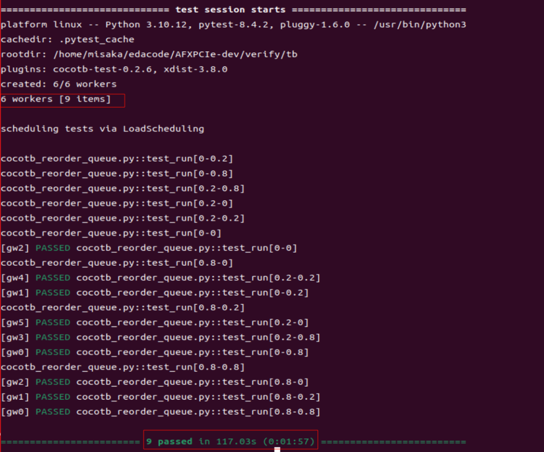 如果希望在仿真环境中充分压榨多核性能,就需要在我们的 cocotb 测试框架中引入并配置 pytest-xdist,以实现高效的并行仿真执行。