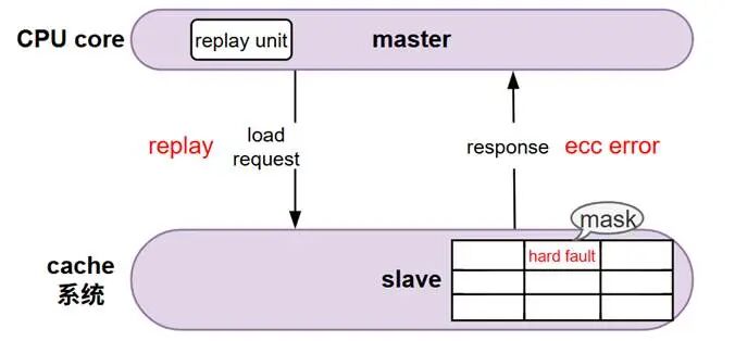 这个问题的解法是靠cache系统来屏蔽掉有ECC错误的set/way,这样master下次replay时就不会遇到ECC,终究还是要有一方做出妥协。
