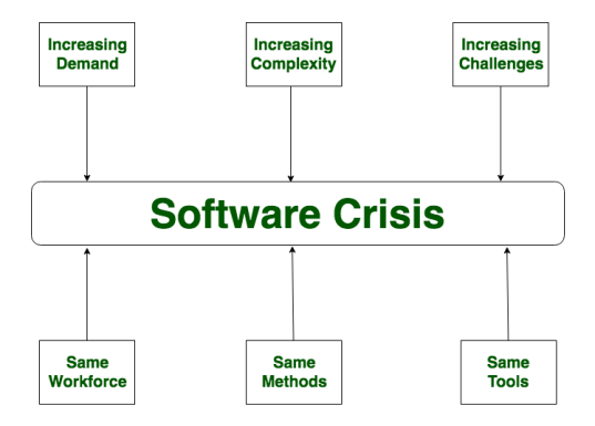 1972 年,艾兹赫尔·戴克斯特拉于计算机协会图灵奖的演讲:软件危机的主要原因,把它很不客气地说:在没有机器的时候,编程根本不是问题;当我们有了计算机,编程开始变成问题;而现在我们有巨大的计算机,编程就成为了一个同样巨大的问题。
