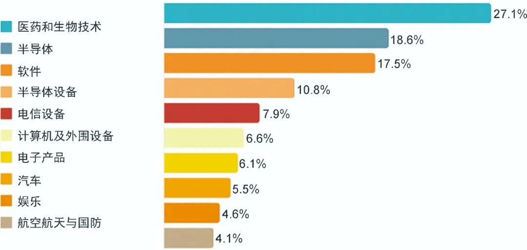 图7清楚地反映了这种势头,它描述了过去10年的半导体并购活动。在这个资本密集型的行业中,前10家半导体公司拥有55%的市场,小公司为了生存而挣扎,不得不通过发展来保持竞争力(Hertz, 2021)。