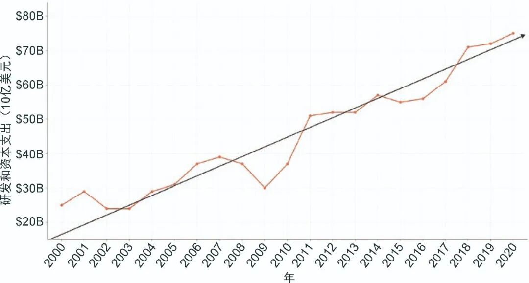 图3 2000-2020年研发和资本支出(SIA Factbook, 2021)