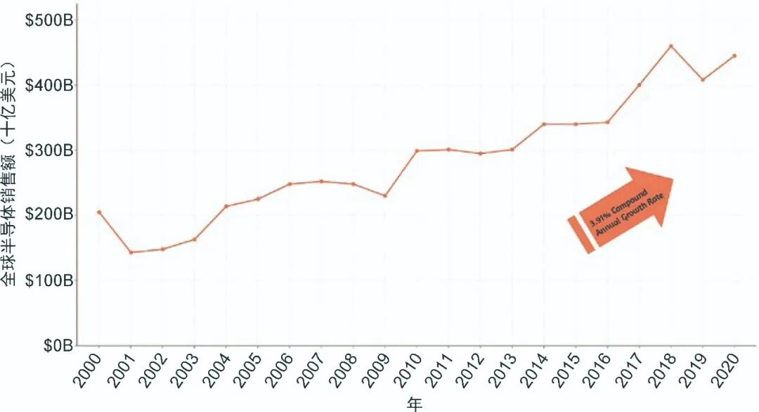 图5 2000-2020年全球半导体销售额(SIA WSTS, 2021)