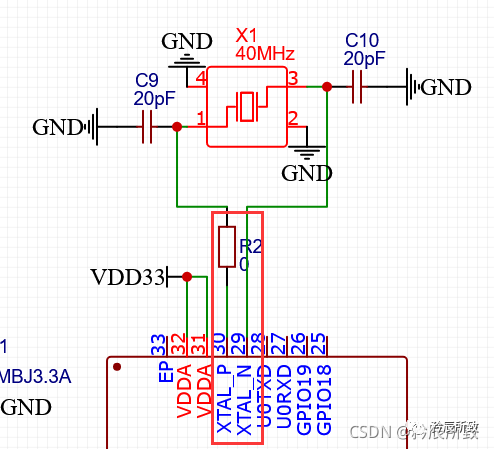 U0TXD 线上需串联 499 Ω 电阻用于抑制 80 MHz 谐波。 USB转串口芯片,期初是准备用便宜的CH340C,奈何缺货,因为只是测试样板,后来还是选用了CP2102,虽然贵一些,但是在立创贴片居然是基础库,那么这就特别香了!