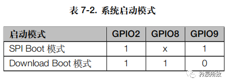 为什么要提启动模式,而且标红,这个和画图至关重要,在官方《ESP32C3技术参考手册》中关于系统启动模式有介绍,复位释放后,GPIO2、GPIO8 和 GPIO9 共同控制 Boot 模式: