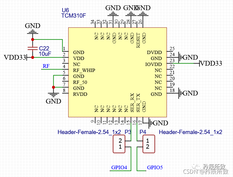 这里使用GPIO4、GPIO5作为与Enocean模块通讯的串口,但是考虑到引脚的复用,使用了跳线帽,防止后期需要用于其他功能,方便飞线: