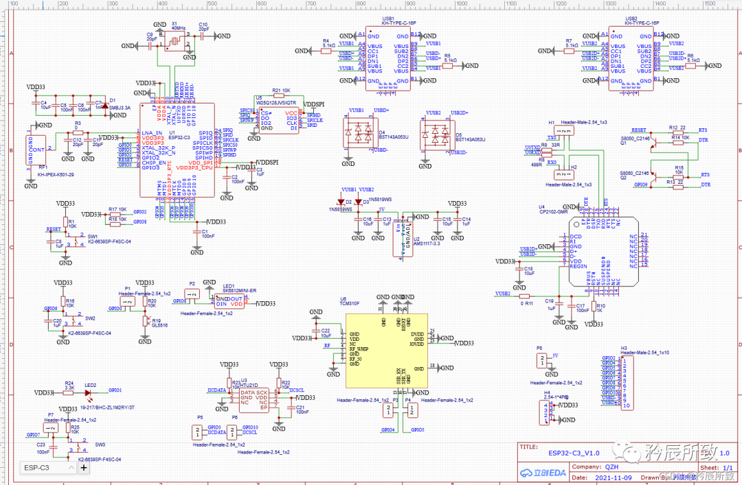 记录一下第一次使用立创EDA第一次设计ESP-C3的开发板 by 矜辰所致
