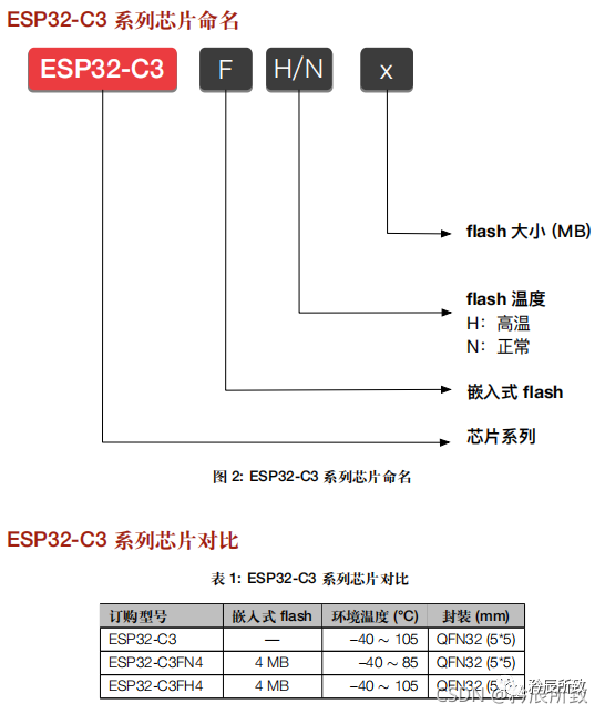 这里选用的是ESP32-C3,我计划使用的是下面那款带内置Flash的,封装是一样的: