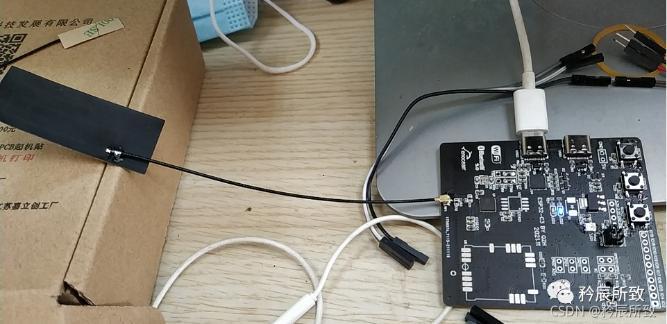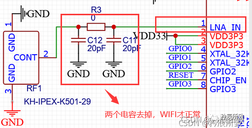 注意!wifi结果是正常的,但是我修改了一个地方,当初设计的时候,天线 π 型网络部分我预留的匹配电容是20pF焊接上去了,但实际上没有计算匹配值根本不能确定大小或者是否需要,不能焊接上去,开始怎么都连接不上,才想起来焊接了匹配电容,去掉后就正常了