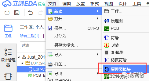 点击文件—— 新建 —— 原理图模块绘制原理图: