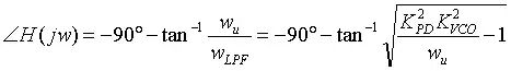 一般定义KPDKvco为环路增益,零极点关系可以看出当带宽wu增加时其相位裕度变小,一般定义s=wu,令根模的平方等于1所以其相移的表达式可以表示为