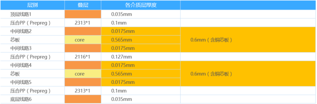 一种六层板叠层如下: