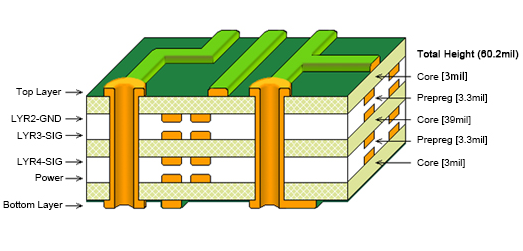 一种四层板叠层如下: