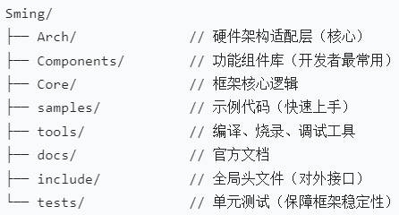 Sming 是一款具备卓越性能且集成丰富网络功能的异步嵌入式 C++ 框架。该框架为开源项目,采用模块化设计,支持多种硬件架构,包括 ESP8266、ESP32 以及树莓派 Pico(涵盖 RP2040 和 RP2350 两个版本)。